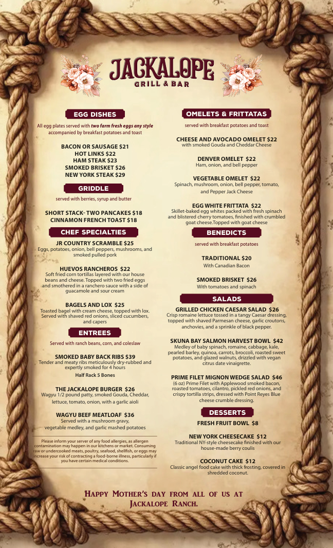 Join us on Mother's Day and treat your mom to a delicious meal!